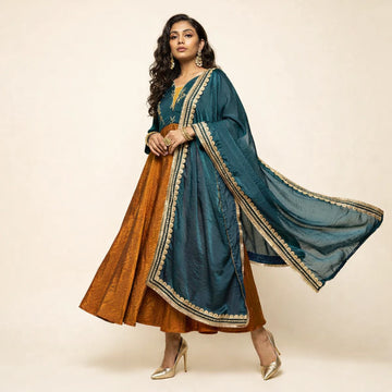 Sunset Gold Blue Kalamkari Printed Kurta -52458K