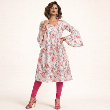 Ivory Floral Print Kurti with Flared Pant Set- 52709KS