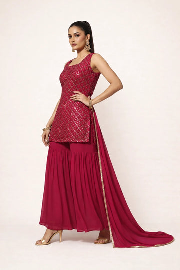 Burgundy Pleated Kurti - 52495G