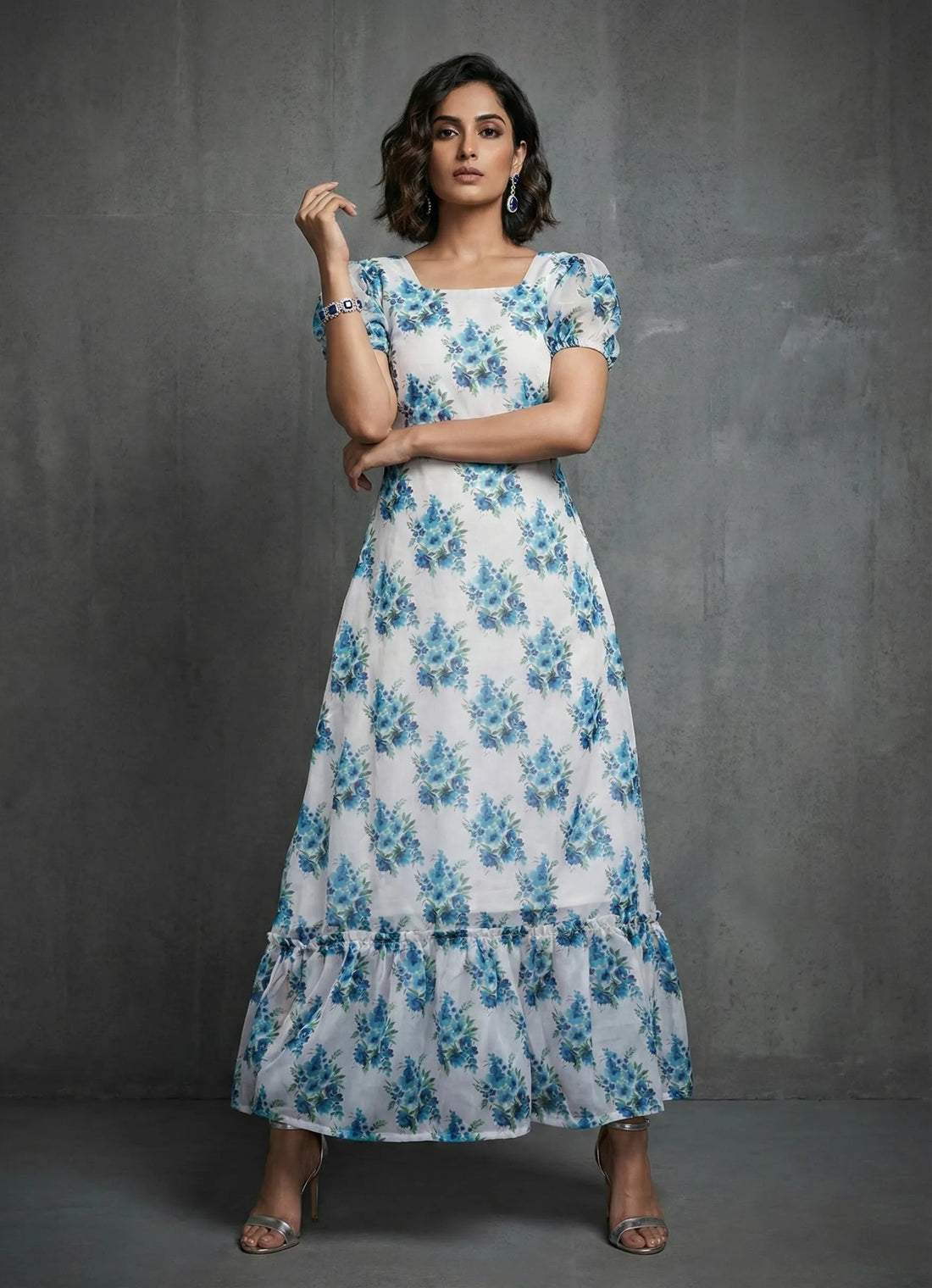 Step into pure freshness and flair with our Floral Mint Sky Blue Dress- your new...