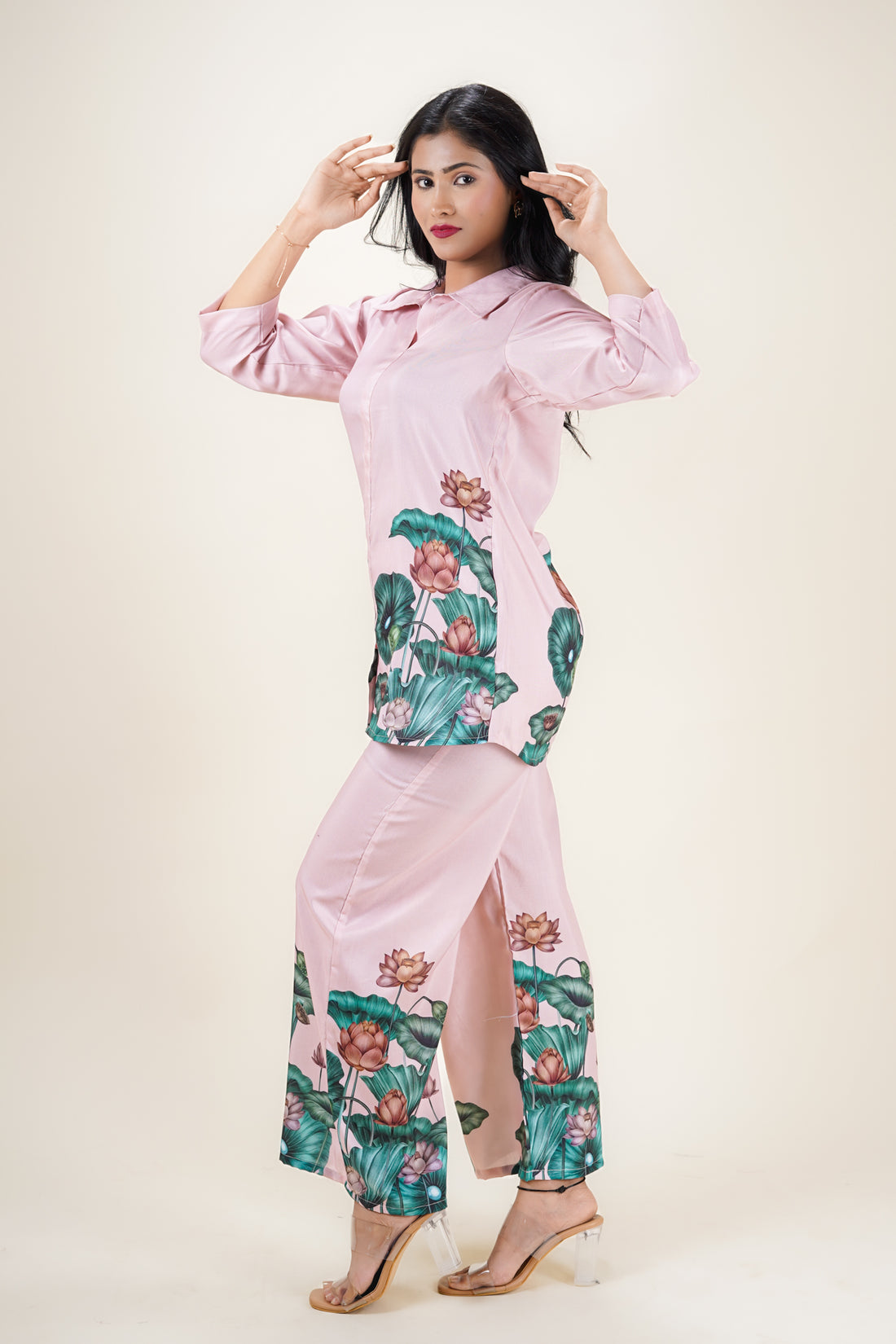 This elegant beige co-ord set is designed for both office and occasional wear, offering a...