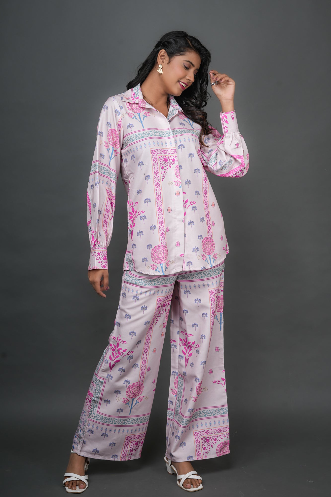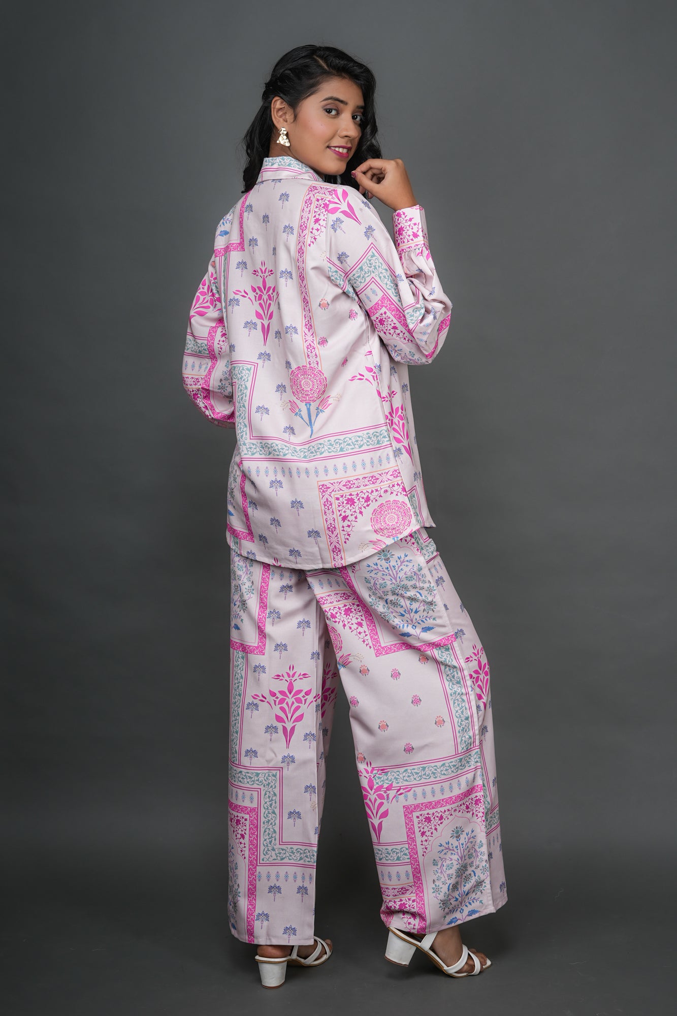 Baby Pink Geometric Floral Co-ord Set - 52607C