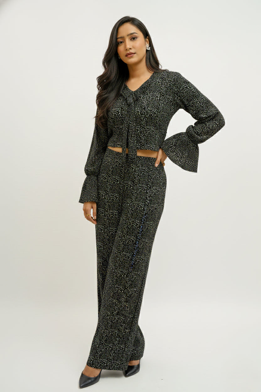 Black Monochrome Dot Printed Co-ord set- 52406C