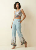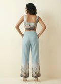 Elevate your everyday style with this chic powder blue co-ord set, featuring a sleeveless square neck crop top paired with a matching palazzo pant. Crafted from soft cotton blend fabric with a gentle machine wash finish, the waist-length top showcases a stunning floral jungle placement print that brings a refreshing, nature-inspired vibe. The coordinated full-length palazzo, adorned with a complementary floral placement print, offers comfort with a half-belt, half-elastic waistband for a secure and flexible fit. Perfect for occasional and regular wear, this outfit blends style and ease effortlessly.