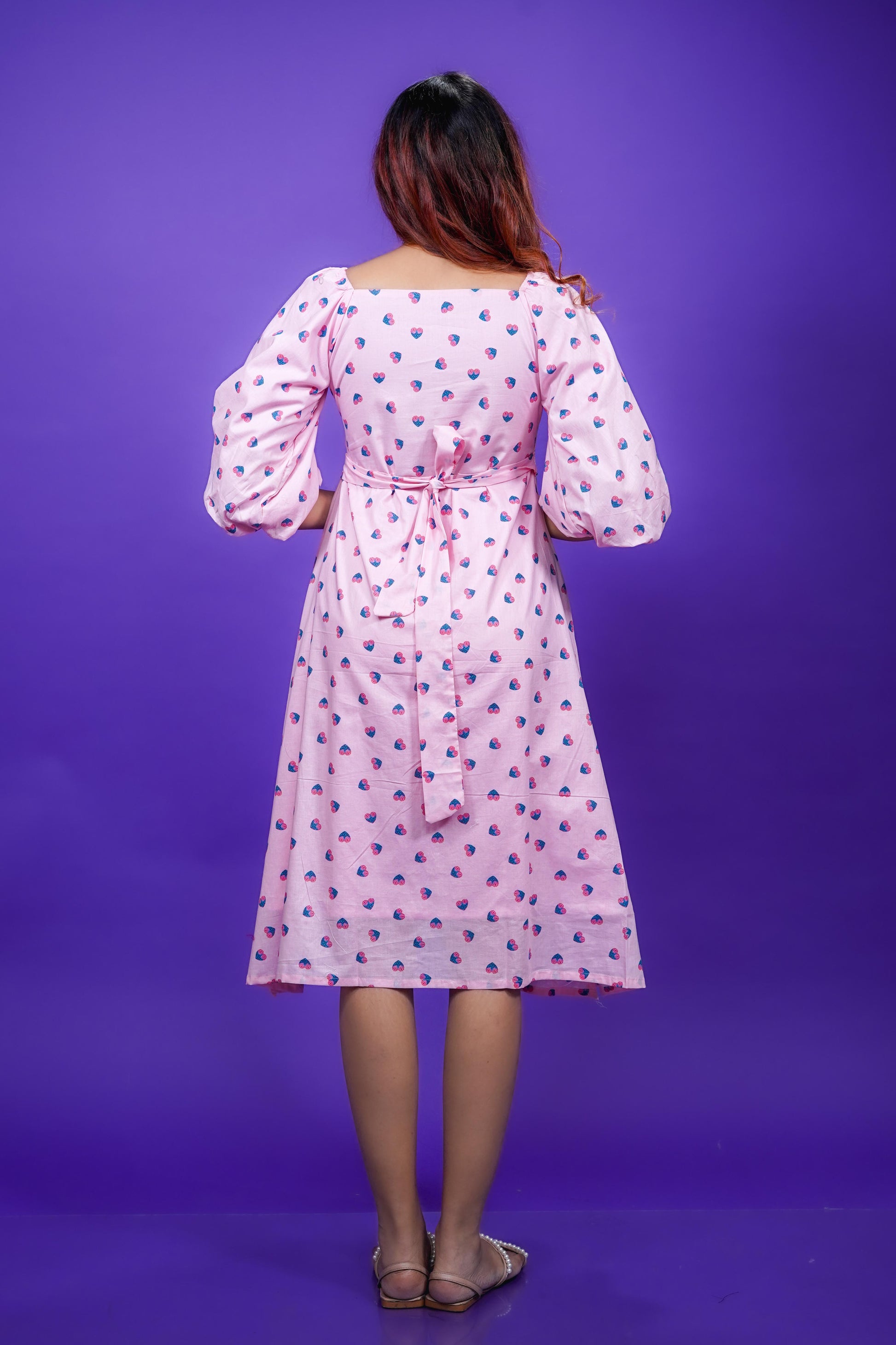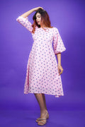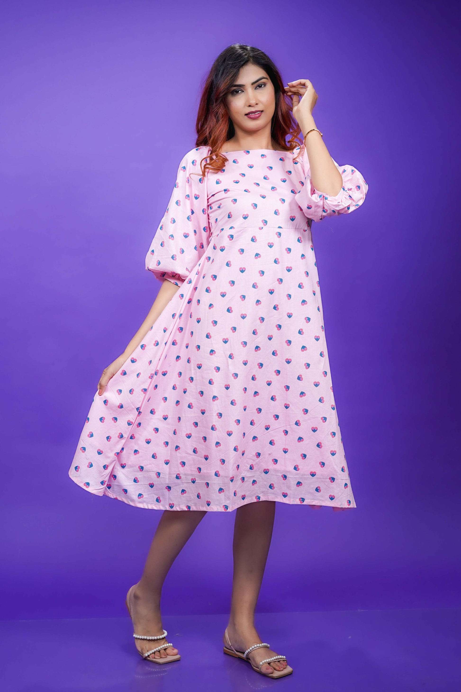 Step into subtle elegance with this blush pink 1 pc dress featuring a refined motif pattern print. Designed with stylish ¾ balloon sleeves and a flattering square neckline, this below knee-length dress effortlessly blends comfort with contemporary charm. Crafted from Cotton Blend digital print fabric, it offers a soft drape and easy movement—ideal for occasional gatherings or regular daywear. A perfect pick for graceful, everyday sophistication with minimal effort.