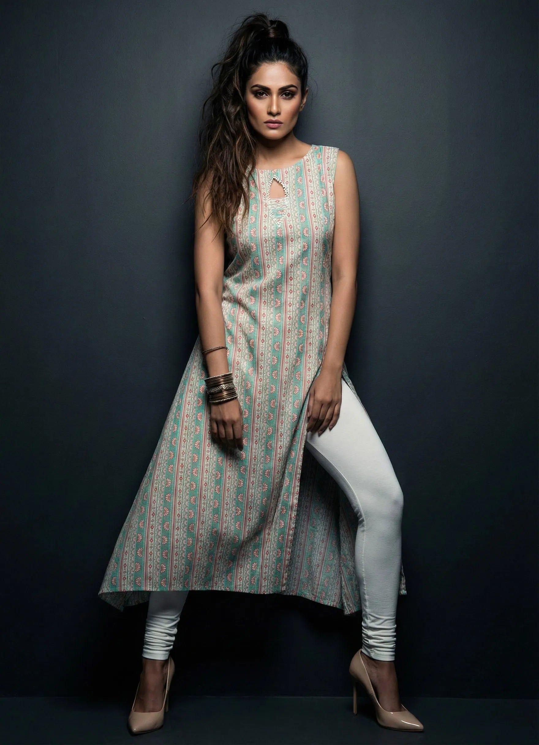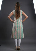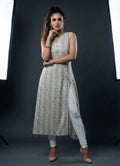 Go elegant, beautiful and simple at same time. This coral and mint coloured floral printed crafted out of Cotton Blend fabric includes a leafhole boat neck with the detailing of white lace on leafhole cut, single side slit and sleeveless gives you comfortable and stylish look. You can style this kurta with white/black bottoms, small diamond statement earrings and chappals.