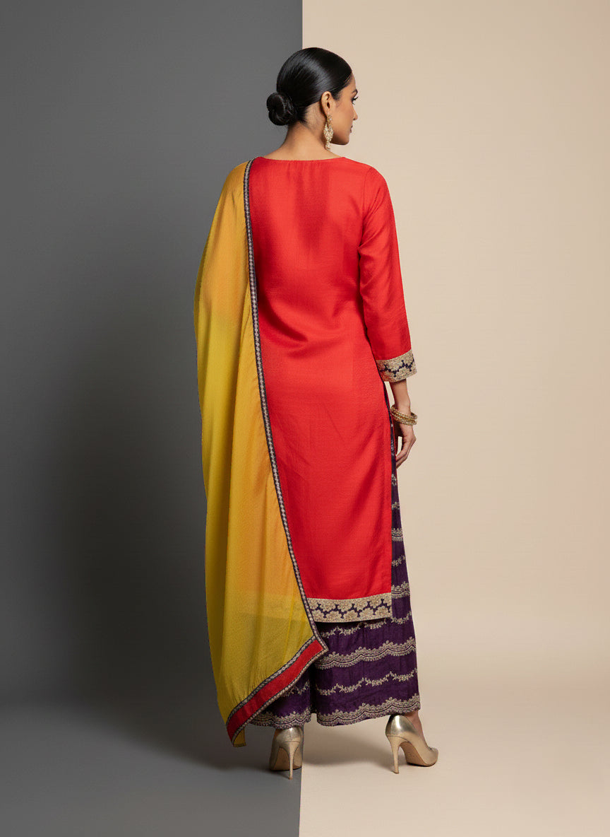 Crimson Grace Kurti & Royal Violet Palazzo Ensemble - 52710KS