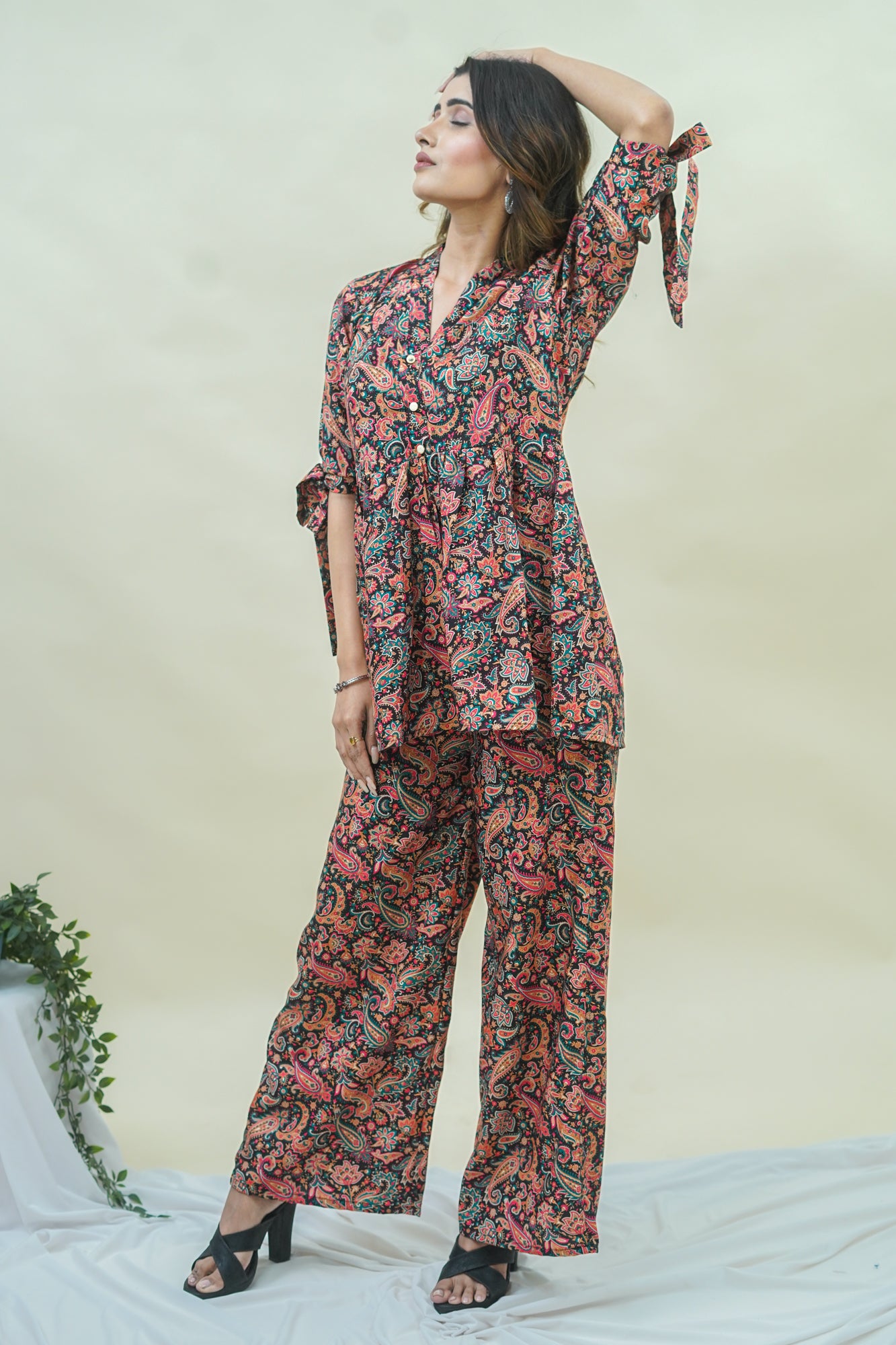 Elegant Noir Paisley Co-ord Set - 52542C