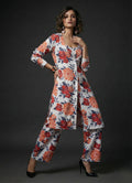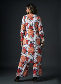 This elegant White Cotton Blend Set is perfect for casual outings with its comfortable and stylish design. The below-knee-length jacket features full sleeves, a round V-neck, and a delicate floral print, offering a graceful and sophisticated touch.