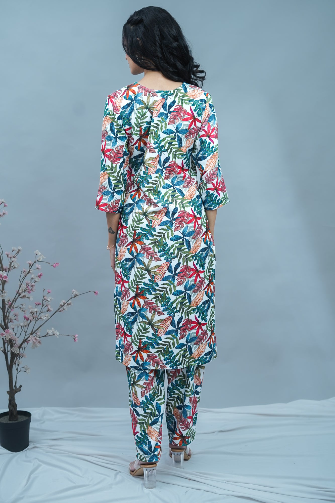 Embrace timeless elegance with this white forest print set, perfect for both casual and occasional wear.