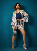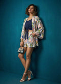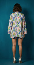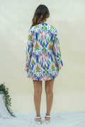 The bold blue inner lining adds a pop of color and creates a unique look. Made from soft Cotton Blend digital print fabric, it's perfect for dressing up or down. The matching bottom has a comfortable above knee length design with a half belt and half elastic closure, providing a flattering fit.