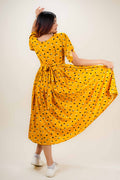 Glam Yellow Floral Print Dress- 52618D