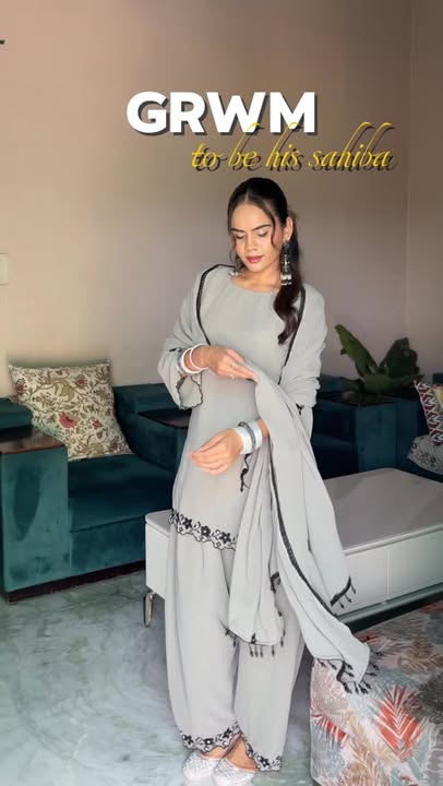 Turn heads and steal the spotlight in our Grey Embroidered Faux Georgette Farshi Palazzo Set — where ethnic elegance meets modern glam!