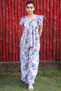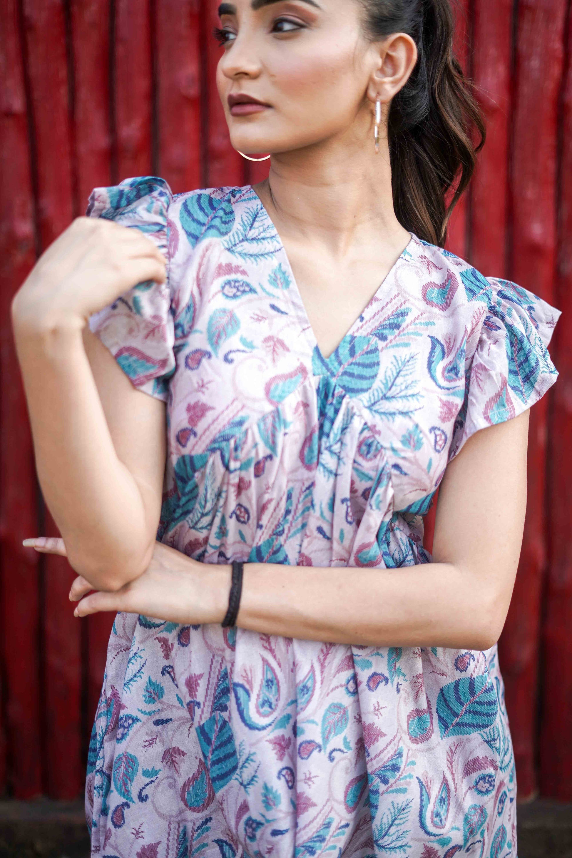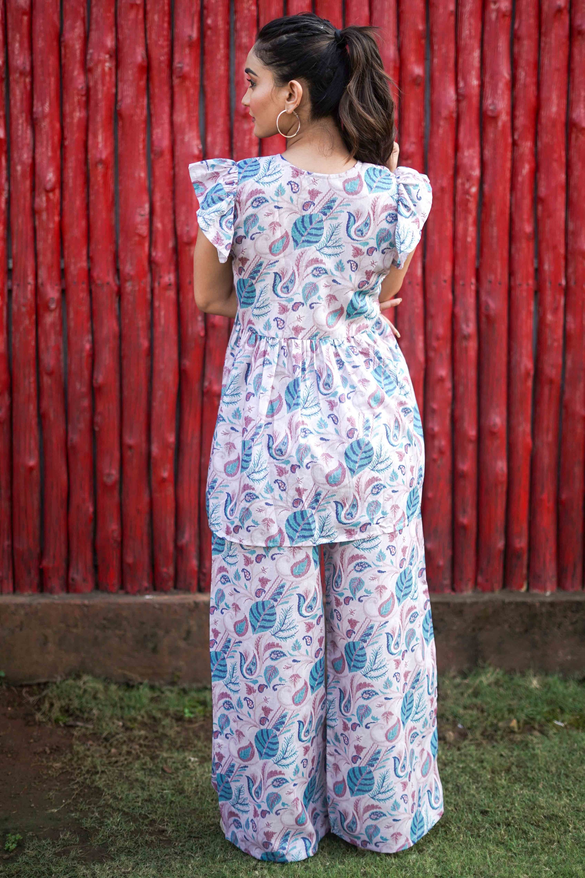 This black and white long jacket-type top is a striking and versatile addition to your wardrobe. It is a jacket-style top designed to be longer in length. It has a patch work of same fabric underneath the jacket near the bust area. It is calf length top including gathers on hemline, balloon sleeves, V neck with an embellishment of drawstring attached in centre of top.