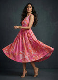 Hot Pink Floral Side-Pocket Dress- 52616D