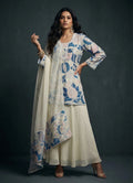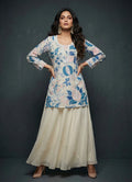 Ivory Floral Print Kurti with Flared Pant Set- 52709KS