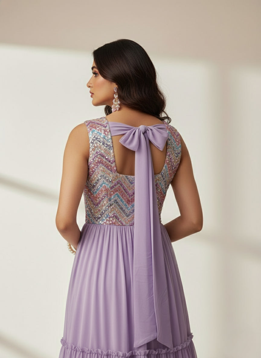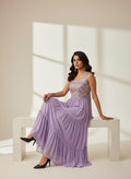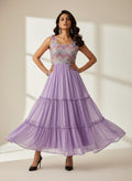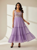 A charming lavender one-piece dress crafted with delicate all-over embroidery. The sleeveless design paired with a square neckline gives it a chic and graceful appeal. Made from soft embroidered fabric, it combines elegance with easy comfort. The full-length silhouette creates a flowy and sophisticated look. Ideal for both regular outings and special occasions with effortless style.