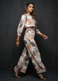 The matching bottom, also in White with the leaf print, has a full-length design and a half-belt, half-elastic closure for a perfect fit. Ideal for both occasional and regular wear, this set combines style and comfort effortlessly.