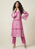 The Luxe Cotton Blend Kurta Pant Set is made from soft muslin fabric, offering a fresh and versatile style. The Luxe Palette kurta features a round neck, and the bell sleeves design adds to its casual sophistication. The calf-length kurta is paired with straight, long coloured pant, which complement the overall look and come with a elastic closure for comfort and ease of wear.