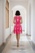 Step into effortless elegance with this sleeveless magenta dress, featuring a graceful boat neckline and all-over motif print. Designed in a 1-piece silhouette with an above knee length, this dress blends sophistication with ease. Made from breathable Cotton Blend digital print fabric, it's perfect for both occasional events and everyday wear. A versatile and stylish choice for your wardrobe.