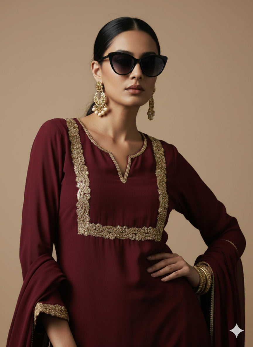 Maroon Elegance Georgette Kurti Palazzo Set - 52723KS