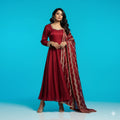 Maroon Floral Scallop Anarkali Set - 52716KS
