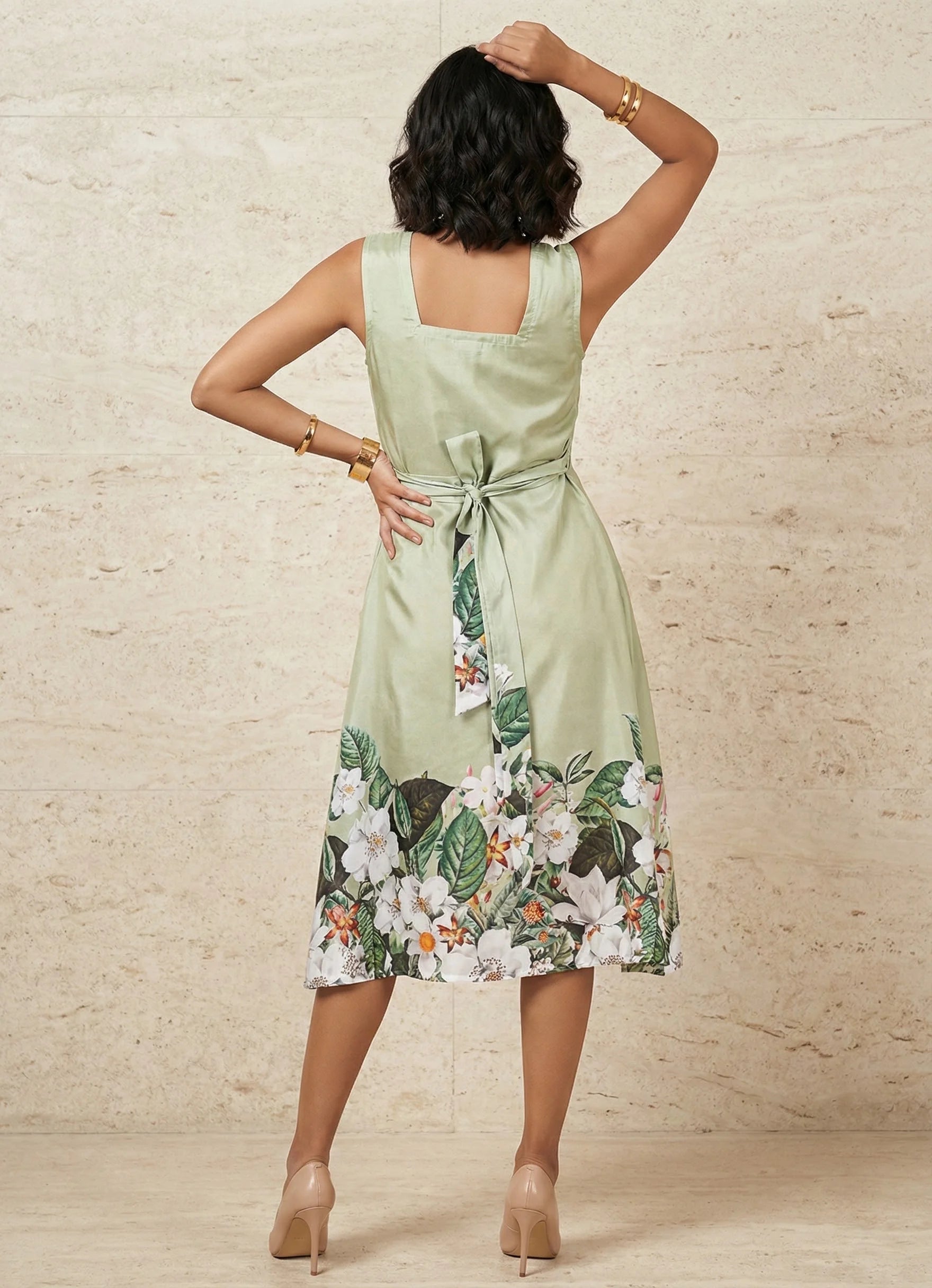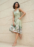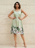 Step into charm with this mint green 1-piece dress, beautifully designed with a sweetheart neckline and sleeveless silhouette for a graceful, feminine look. Adorned with a subtle floral placement print, this knee-length dress exudes both elegance and freshness, making it ideal for occasional and regular wear. Crafted from Cotton Blend digital print fabric, it offers breathable comfort and is easy to maintain with gentle machine wash care. A perfect pick for sunny days, casual gatherings, or brunch outings.
