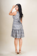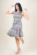 This elegant monument gray dress features a sleeveless design with a classic boat neck, showcasing a stylish stripy print throughout. Crafted from Cotton Blend with digital printing, it offers a comfortable fit and is easy to care for with gentle machine wash. The knee-length silhouette makes it perfect for both occasional and regular wear, blending effortless style with everyday versatility.