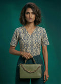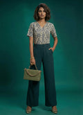 Designed for both office and occasional wear, this sophisticated dark moss green co-ord set blends comfort with modern elegance. The waist-length top features elbow-length plain sleeves, a sharp V-neck, and a contemporary geometrical print, all crafted in soft cotton blend digital fabric that's easy to maintain with a gentle machine wash.
