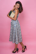 This elegant dark moss green one-piece is perfect for both office and occasional wear. The sleeveless design and round neck create a minimalist, clean silhouette, while the geometrical print adds a touch of modern sophistication. Crafted from soft cotton blend digital fabric, it offers both comfort and easy care with a gentle machine wash. The ankle-length cut enhances the graceful flow of the garment, making it a versatile choice for any occasion.