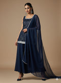 Navy Blue Sequin Embroidered Kurti Set - 52740KS