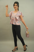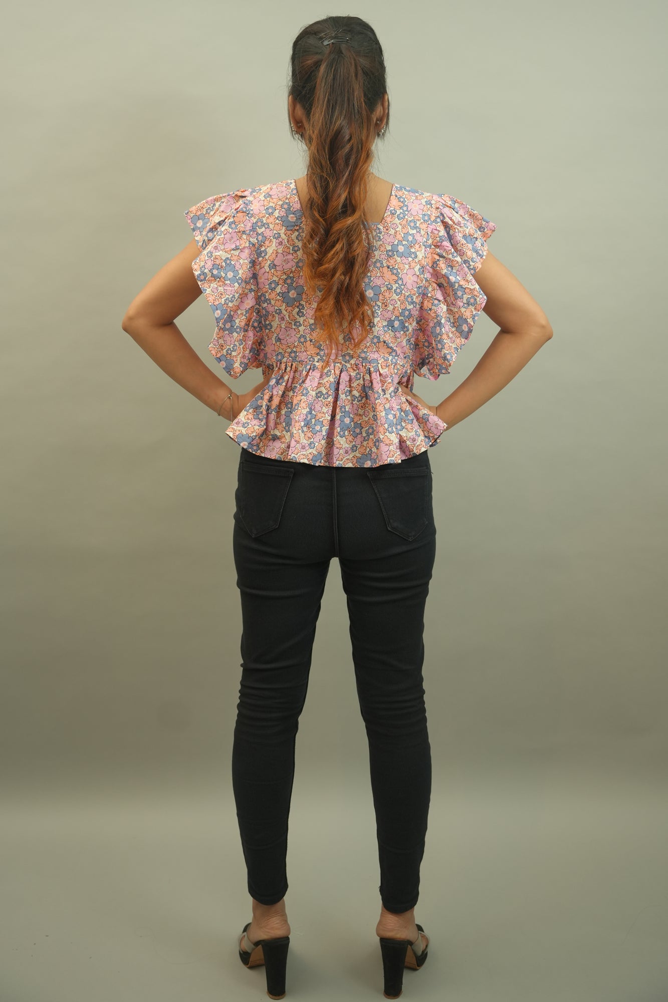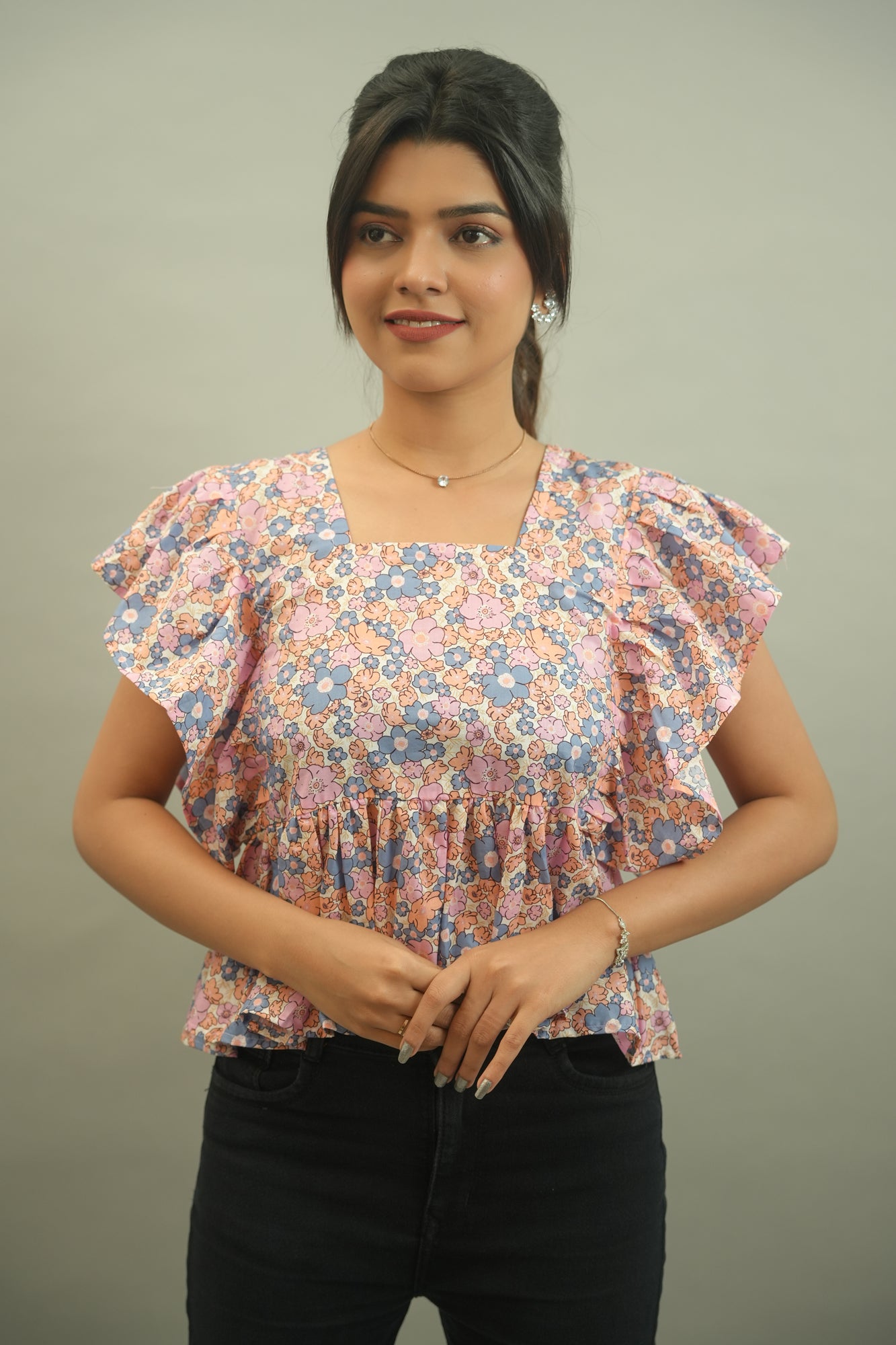Definition: A lovely pattern with amazing shades of pink and blue is perfect for a casual meet giving a fresh vibe. This pattern consists of a square neckline, pleated sleeves, gathers around the waist and is a flare hemline till waist length.