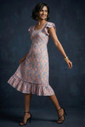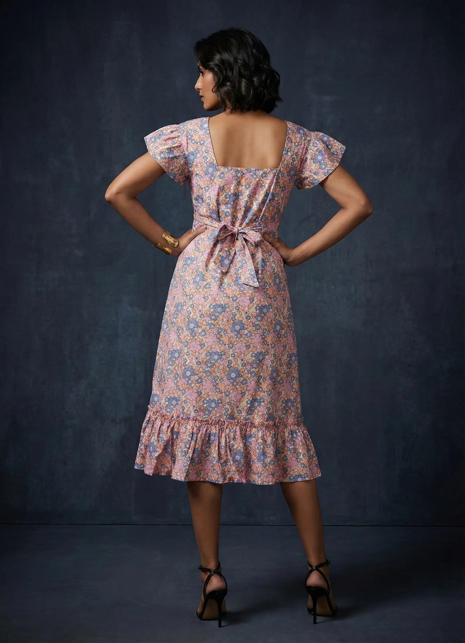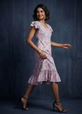 Pink Blue Multi-coloured Floral Printed Dress- 52384D