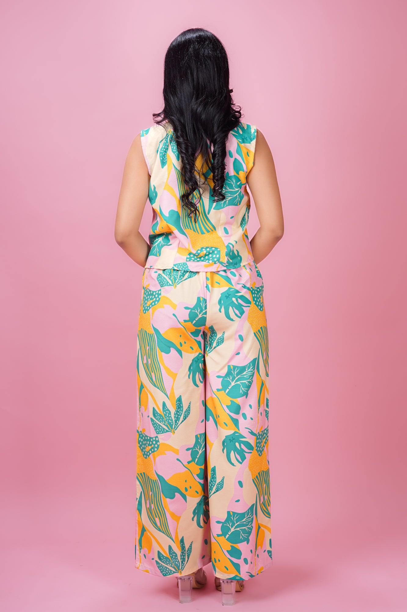 Powder Pink Abstract Print Top & Palazzo Set- 52633C
