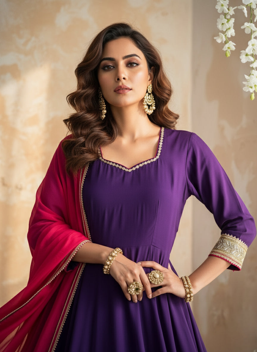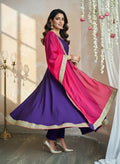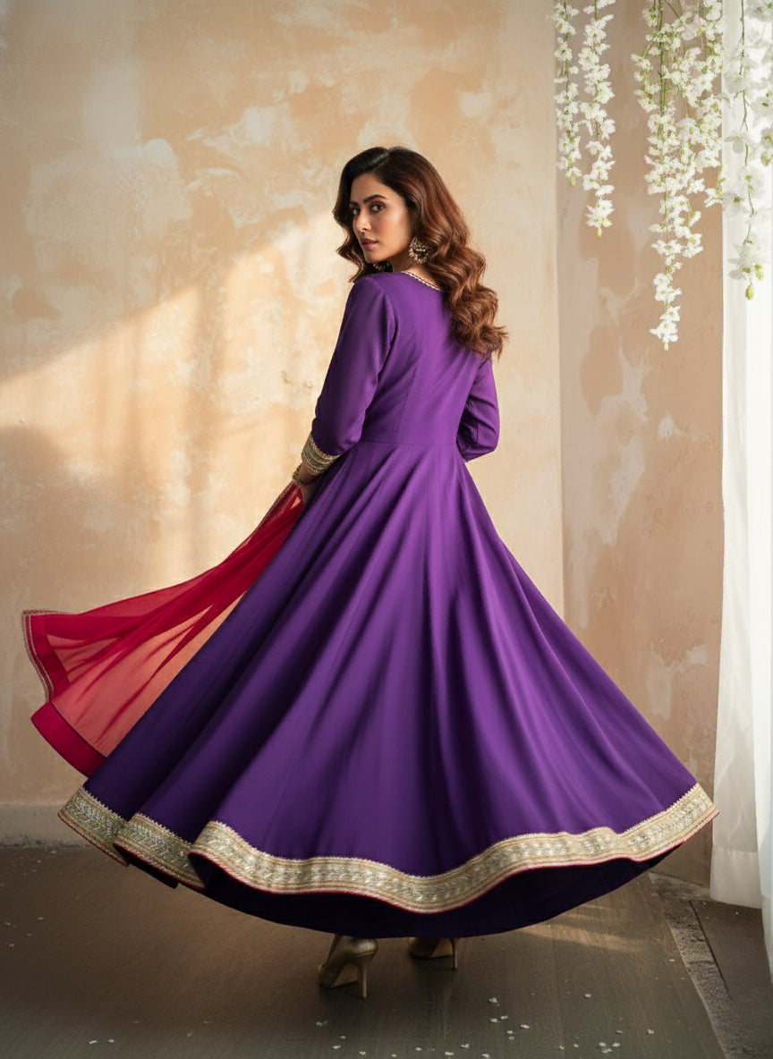 Purple Anarkali with Gold Lace Organza Dupatta Set - 52735KS