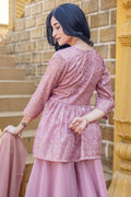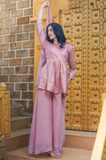 Quartz Pink Embroidered Paplum & Palazzo- 52470A