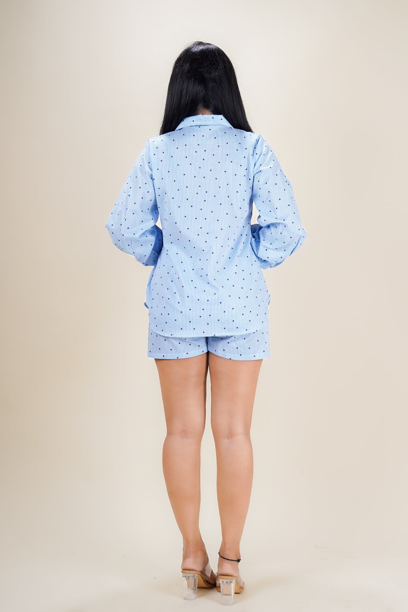 Sky Blue Balloon Sleeve Shirt with Shorts Set- 52626C