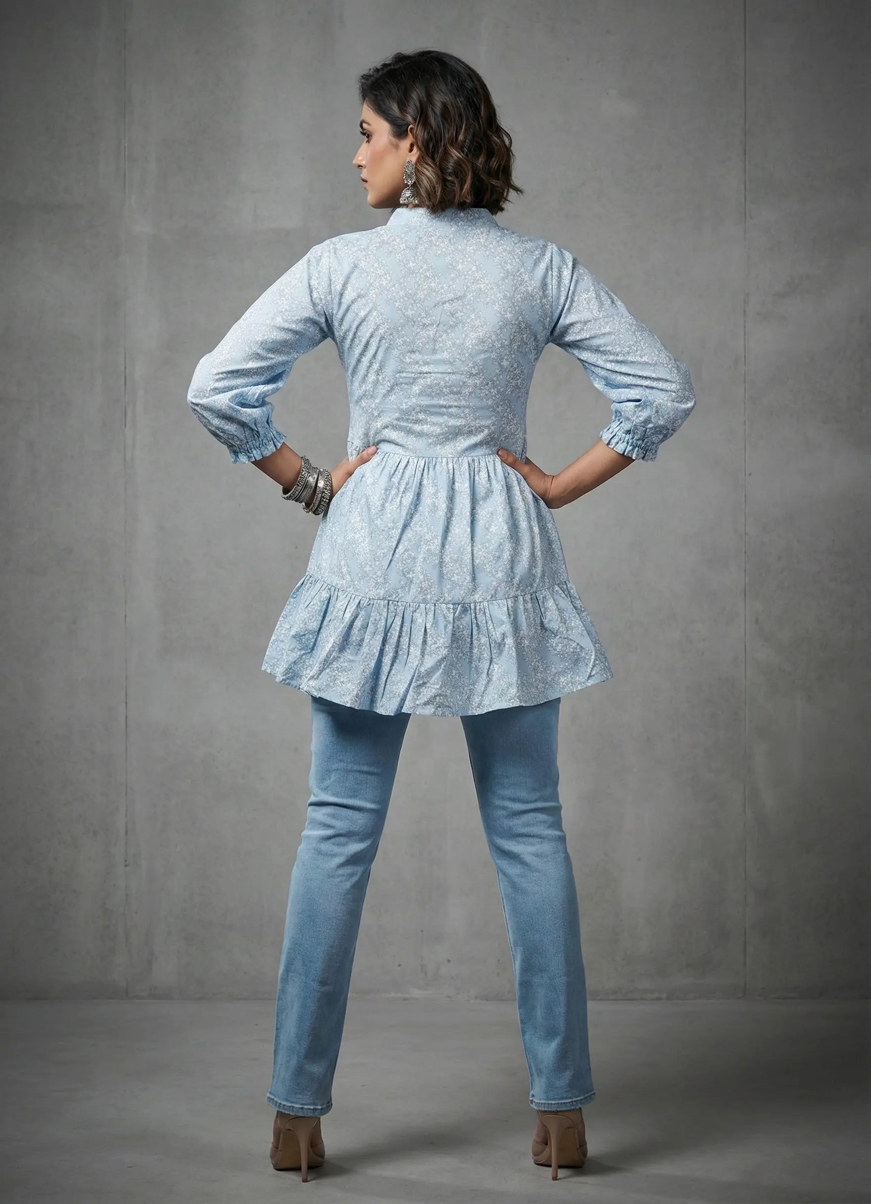 Sky Blue Floral Printed Top -52430T