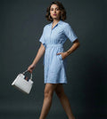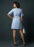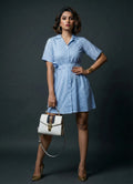 Sky Blue Striped Collar Neck Dress- 52627D