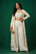 White Floral Motif Organza Jacket Set- 52733C