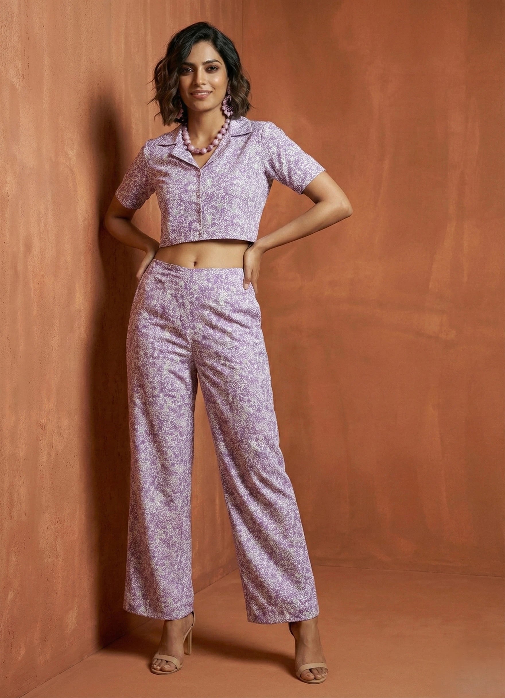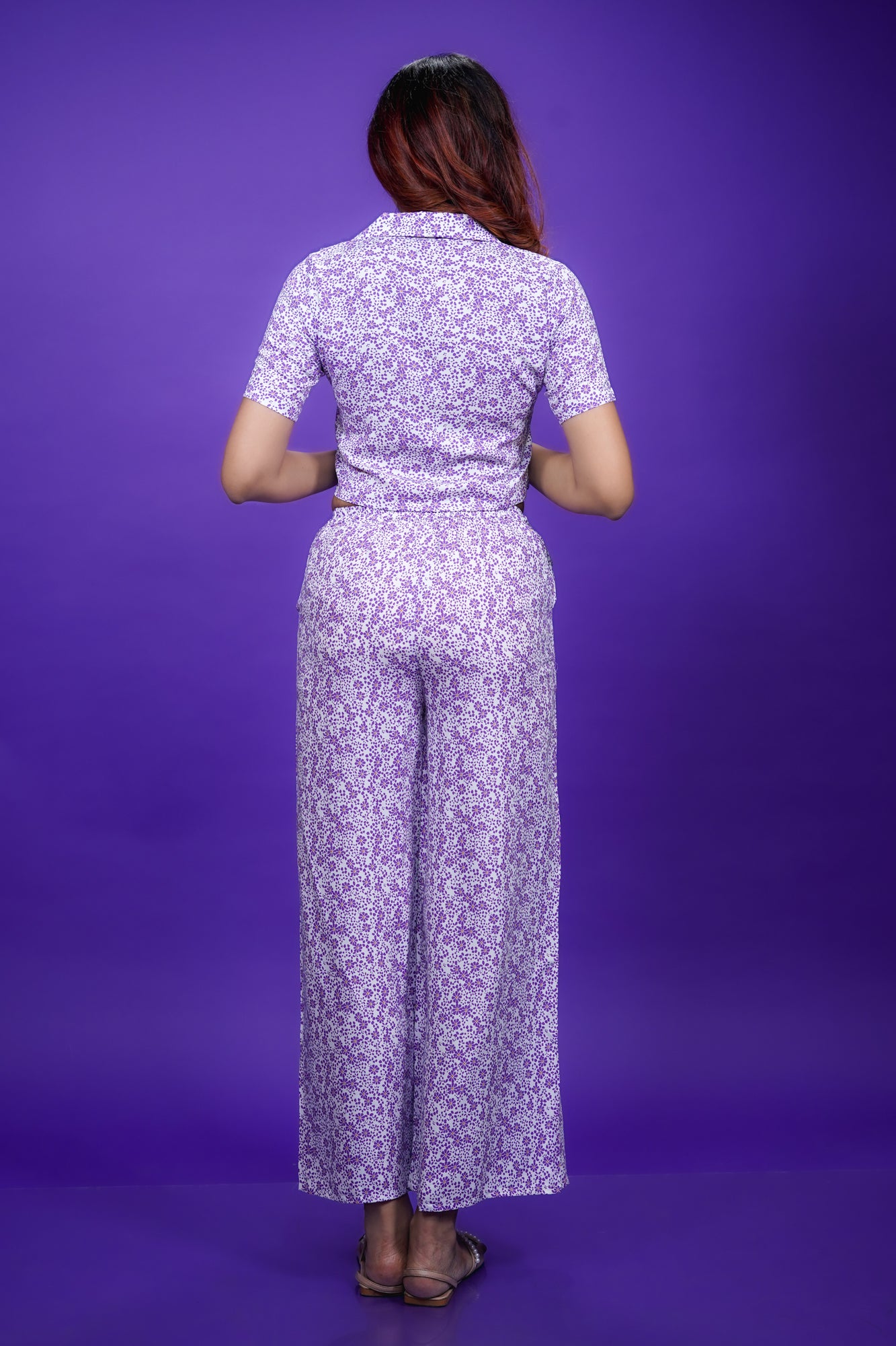 Refresh your wardrobe with this elegant white co-ord set featuring an intricate floral print. The waist-length top comes with elbow sleeves and a stylish V-neckline, offering a perfect balance of sophistication and comfort. Paired with full-length palazzo pants in a matching print and a half belt, half elastic waist, this Cotton blend printed set is ideal for both occasional gatherings and regular wear. Gentle on the skin and easy to maintain with a gentle machine wash, it's your go-to ensemble for understated elegance.