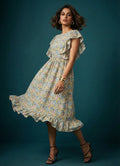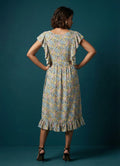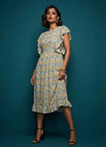 This garment has a multitude of colours, perfect for women who love sporting colourful outfits. It is made of Cotton Blend fabric, a unique choice that can keep you easy breezy and comfortable through out the whole day. This outfit consists of bodice pattern with styling of frills on it, boat neck , flared pattern and frills on hemline of the dress.