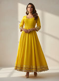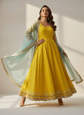 Yellow Anarkali with Sky Blue Organza Dupatta Set - 52717KS